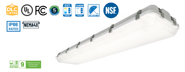 VTSC-4-LS60-G1-FSK 34W 38W 45W LED 4' VAPOR TIGHT FIXTURE DUAL SELECTABLE 120-277V 3500K 4000K 5000K 80CRI 4,500LM 4,940LM 5,850LM DIMMABLE 100,000HRS WHITE FINISH 49.8"L 5.0"W 3.6"H |