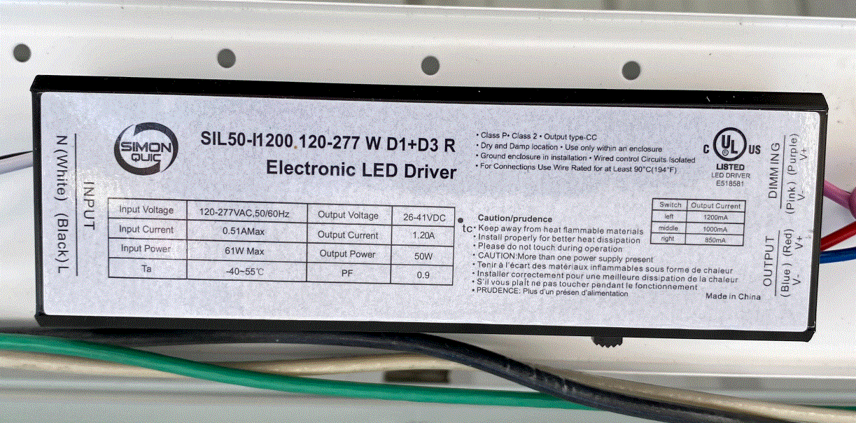 SIL-50-I900-120-277-W-D1+D3-R(900/750/540) 50W CC CONSTANT CURRENT LED DRIVER 120-277VAC-IN 26-42VDC-OUT DIP SWITCH 540mA 750mA 900mA DIMMABLE 0-10V 6.06"L 1.3"W 1.1"H |